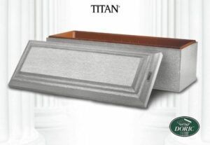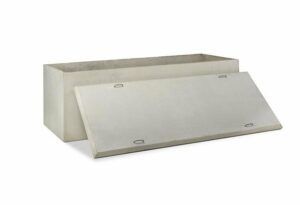 2275 lbs. (Box 1450/Cover 825) – A concrete burial vault with a grooved preformed polyrib MDT liner. Completely reinforced with steel and fibermesh. One piece cover sealed with flexible butyl resin sealant. Nameplate and one fraternal or religious emblem. Exterior painted in gold or silver