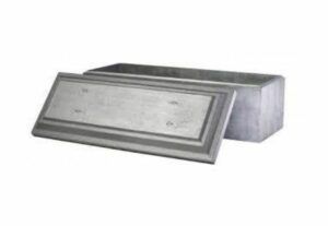 2400 lbs. (Box 1550/Cover 850) – A concrete burial vault with a brown mirror finish fiberlon liner completely reinforced with steel and fiber mesh. One piece cover with four cast aluminum handles, sealed with flexible butyl resin sealant, nameplate and one fraternal or religious emblem. Exterior painted in gold or silver.